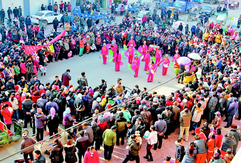 12月18日,东明县大屯镇党委政府院前的大道上人山人海、热闹非凡,大老远就能听到震耳欲聋的叫好声。在这里,一场近20支代表队参加的乡村文艺汇演正在上演,吸引了十里八乡的老百姓前来观看。“扭秧歌”、“撅老四”、“羊抵头鼓舞”、“戏曲”、“鼓舞”等丰富多彩的节目表演,不时引得观众拍手叫好。