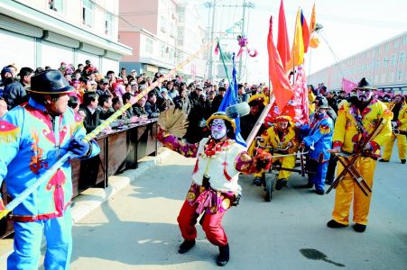 省非物资文化遗产项目“撅老四”滑稽的表演,不时引得观众捧腹大笑