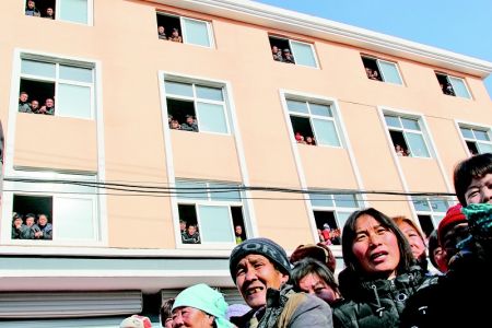 受场地限制,不少观众爬到了附近的楼上观看演出