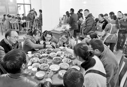 1月16日,在云南省宣威市龙场镇得所村,亲朋好友在杨怀珍家品尝丰盛的“杀猪饭”。