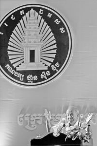 ▲1月19日,在柬埔寨首都金边,柬埔寨亲王诺罗敦·拉那烈在奉辛比克党会议上讲话。