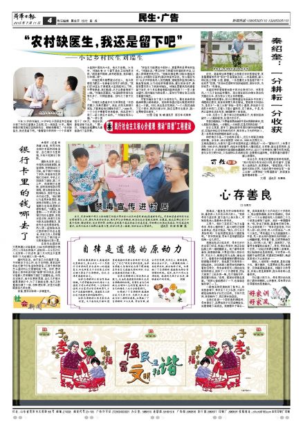 今年53岁的刘瑞生,19岁毕业于菏泽医专后就被分到了牡丹区皇镇乡卫生院,这一呆就是34年。期间有数次调至城区医院的机会,都被他谢绝了:“农村缺医生,我还是留下吧。”看着昔日的同学一个个在城市大医院干得风光十足,他从不言悔。34年中,刘瑞生有25个春节是在卫生院度过的,“越是春节期间,病号越紧急,我在哪儿过年都一样”。