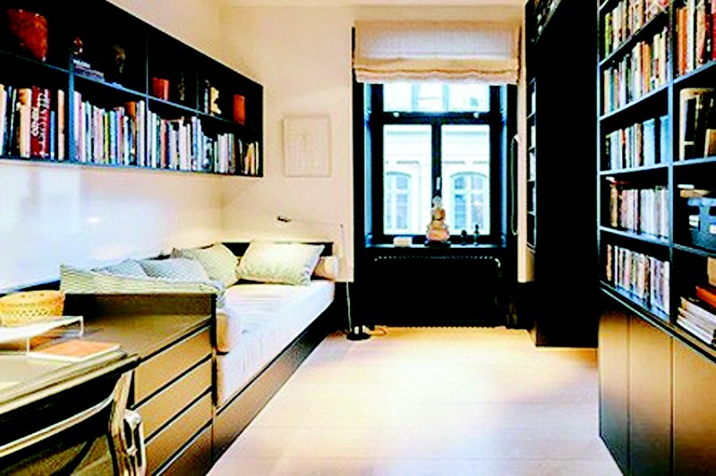 ③相比于在书房中立个大书架给人以压力感的设计,这样的设计又未尝不可,小书架也具有很好的收纳作用,更重要的是,当人们可以坐下来阅读时,随手就能拿到一本书。 据人民网