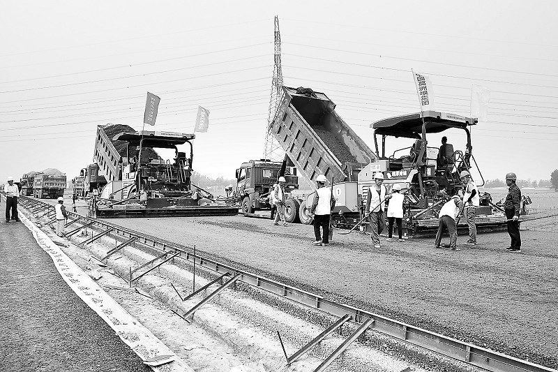 5月16日上午,记者在巨单高速成武段施工现场看到,巨单高速长度最长的东鱼河大桥已经腾空横卧,大桥附近成武互通1号、2号匝桥也已建成。沿着东鱼河大桥一路向北行驶,记者看到工程车辆不停穿梭,铺设沥青油层的施工队正在进行路面施工。