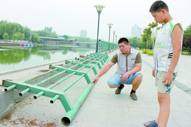 本报1600000热线消息(记者 建国 见习记者 孟欣)8月28日,本报报道了赵王河公园内一处腐蚀严重的沿河护栏将儿童砸伤后,市民纷纷致电本报新闻热线反映,赵王河公园不光沿河护栏存在问题,其他一些设施如景观灯、桥梁等也损毁严重,存在极大的安全隐患,希望相关部门能尽快修复。9月3日,记者采访了解到,目前赵王河沿岸护栏腐蚀严重的问题仍未解决,安全隐患依旧存在,且没有部门或单位表示对此负责。
