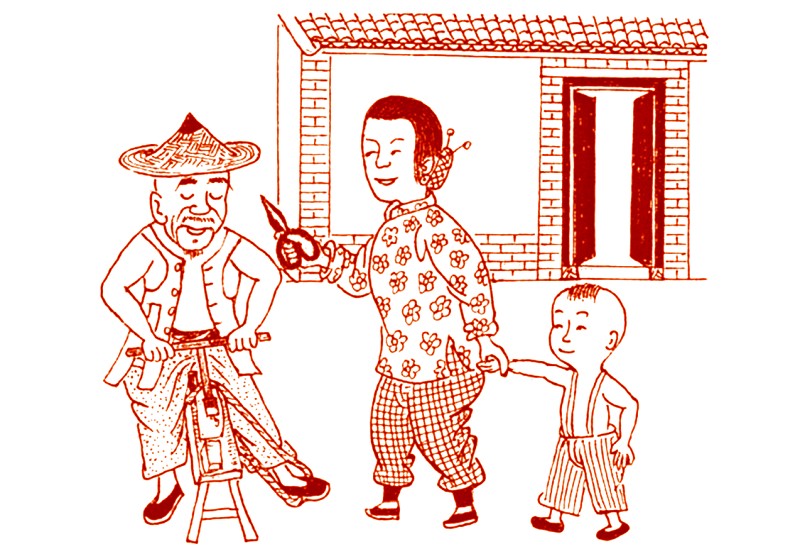 如果顾客送来一把旧剪子,只需在磨刀石上仔细地磨刃口,看看两股剪刀刃口是否吻合,若不吻合,就用小锤在剪子轴上敲两下。最后拿一根头发一剪两段,主人啧啧称赞,痛痛快快地付了工钱。如无零钱,便拿个窝窝头来,匠人也是乐受不辞的。