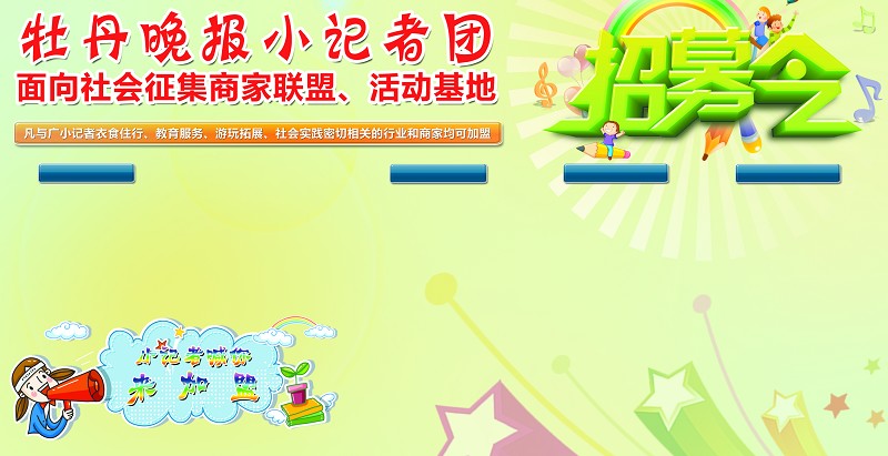 为给小记者们提供更多社会实践的机会,提供更多样化的增值服务,同时,增加单位、企业及商家的社会形象、品牌效益及影响力,牡丹晚报小记者团将成立“商家联盟”,面向社会公开征集联盟商家。同时,欢迎更多单位成为小记者活动基地。