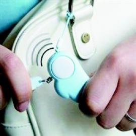 这个小装置其实是日本的警备公司专门为女性设计的警备器,内藏GPS功能,遭遇危险只要按下中间的大按钮,立刻就会与警备公司连线。