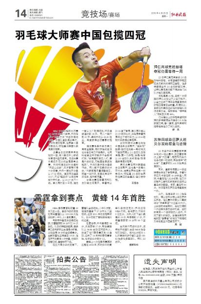 羽毛球大师赛中国包揽四冠