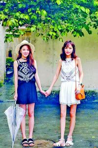 就算和闺蜜好得如同双胞胎,也没必要件件衣服都同款。想要搭配出“好姐妹”的既视感,不见得非要一起买新衣,不妨从各自的衣柜里寻找一些相同色系或者相同花纹的衣服。比如,我穿一件条纹短裤,你穿一件条纹上衣,再搭配纯色的基本款上衣或短裤,这样上下呼应的搭配既有趣又能让人感觉亲密无间。