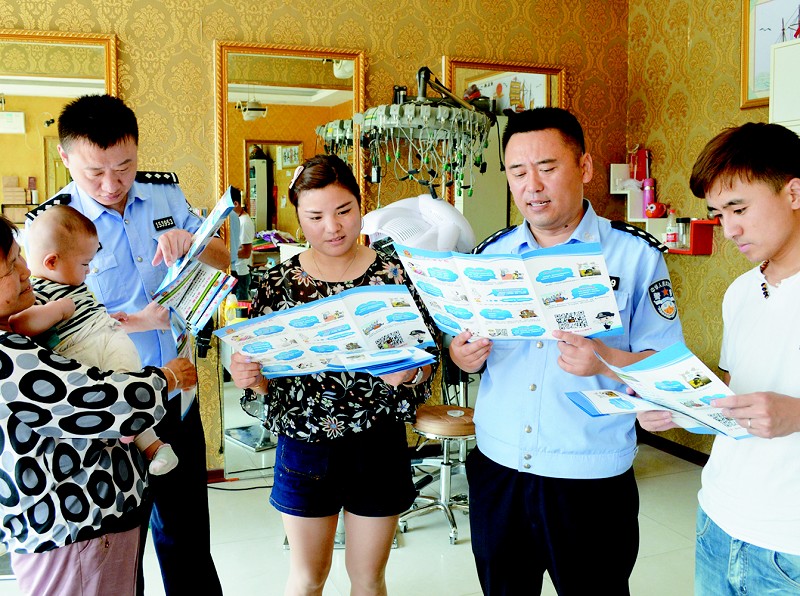 近日,为强化对诈骗违法犯罪活动的打击防范力度,提高群众的防范意识和防范能力,市公安局开发区分局组织开展防范诈骗集中宣传活动。图为该局佃户屯派出所民警走进辖区门市、商店开展防范宣传。李增强 摄