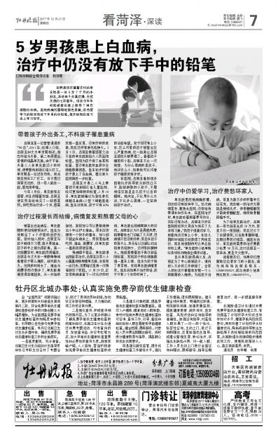 5岁男孩患上白血病,治疗中仍没有放下手中的铅笔