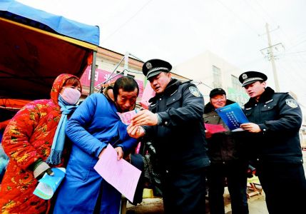 12月11日,曹县公安局梁堤头派出所民警深入乡村集市,开展防骗宣传活动。在集市上,民警通过发放宣传资料,并利用真假人民币样本,现场“揭秘”防骗伎俩和手段,向群众宣传防盗、防骗等安全防范知识。 通讯员 董西德 摄