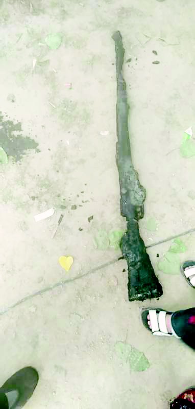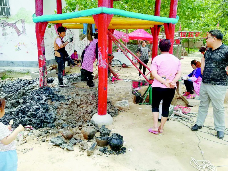 本报讯(牡丹晚报全媒体记者 牛 腾) 近日,单县朱集镇张寨村村民在该村“湖西小延安红色教育基地”清理古井淤泥时,挖出多个罐子和疑似手榴弹、步枪的老物件,村民猜测是抗战时期留下的。