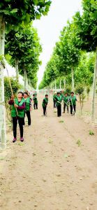 公司在快速增长的同时,给当地乡、村富余劳动力提供了大量就业的机会。宋世朋结合乡村振兴发展战略,借力花卉苗木产业、推动美丽乡村建设,为马头镇四村、邵庄、梁坊、新庄,小井镇车务岗、尹集、小井、裴子岩、白佛寺、于兴屯、牛集等每村提供绿化苗木10万余元。同时,给当地贫困户提供了大量就业机会,增加了农民收入。基地现有务工人员110人,其中贫困人口12人,公司每年收益的10%用于贫困户分红,带动了54人脱贫。
