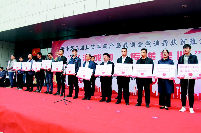 本报讯(牡丹晚报全媒体记者 牛 腾) 为宣传党的扶贫政策、展示菏泽扶贫成果、拓展扶贫车间产品销售渠道、推动机关和企事业单位等带头参与消费扶贫、增加贫困群众收入、助推脱贫攻坚战胜利完成,10月14日,为期两天的菏泽第二届扶贫车间产品展销会暨消费扶贫推介会在菏泽会盟台开幕。